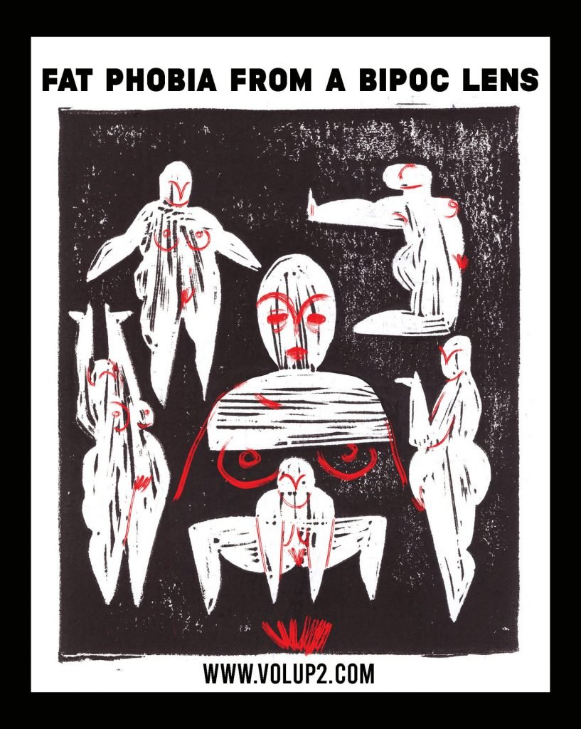 Fat Phobia from a Bipoc Lens by Chanelle Taylor, Original illustration by Stephany Victorine, Graphics by VOLUP2
