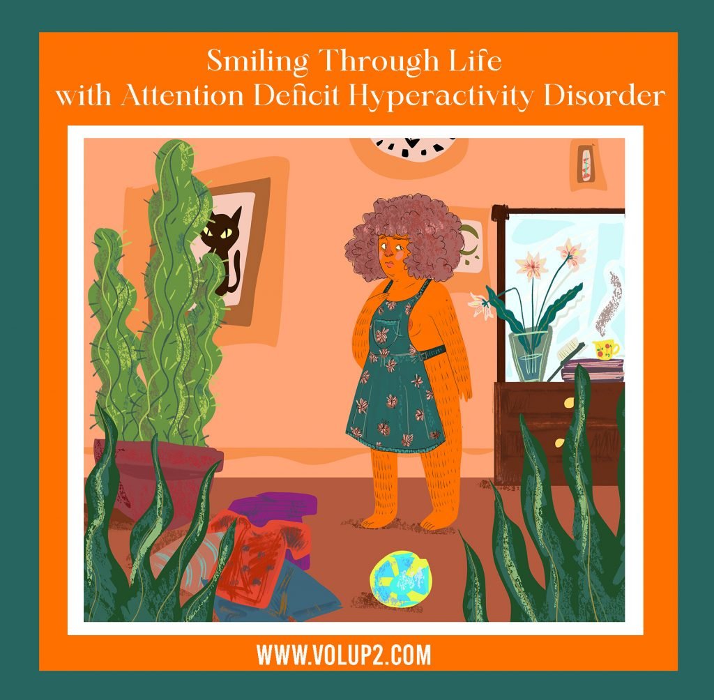 Smiling Through Life with Attention Deficit Hyperactivity Disorder by By Victoria Follain, Original illustration by Stephany Victorine, Graphics by VOLUP2
